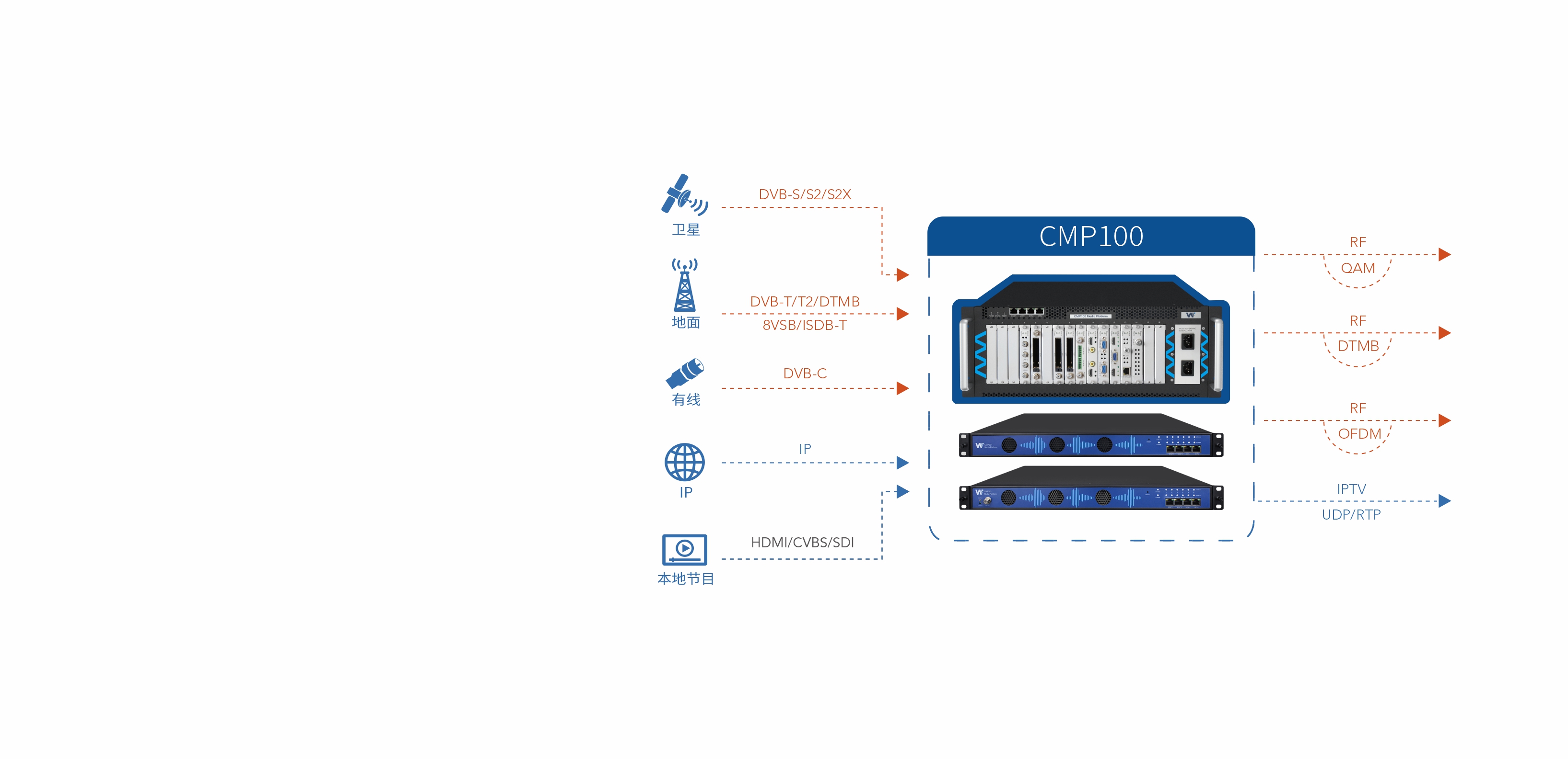 支持多标准信号接收、高密度编码和灵活输出,满足大型酒店等复杂场景的全部需求。