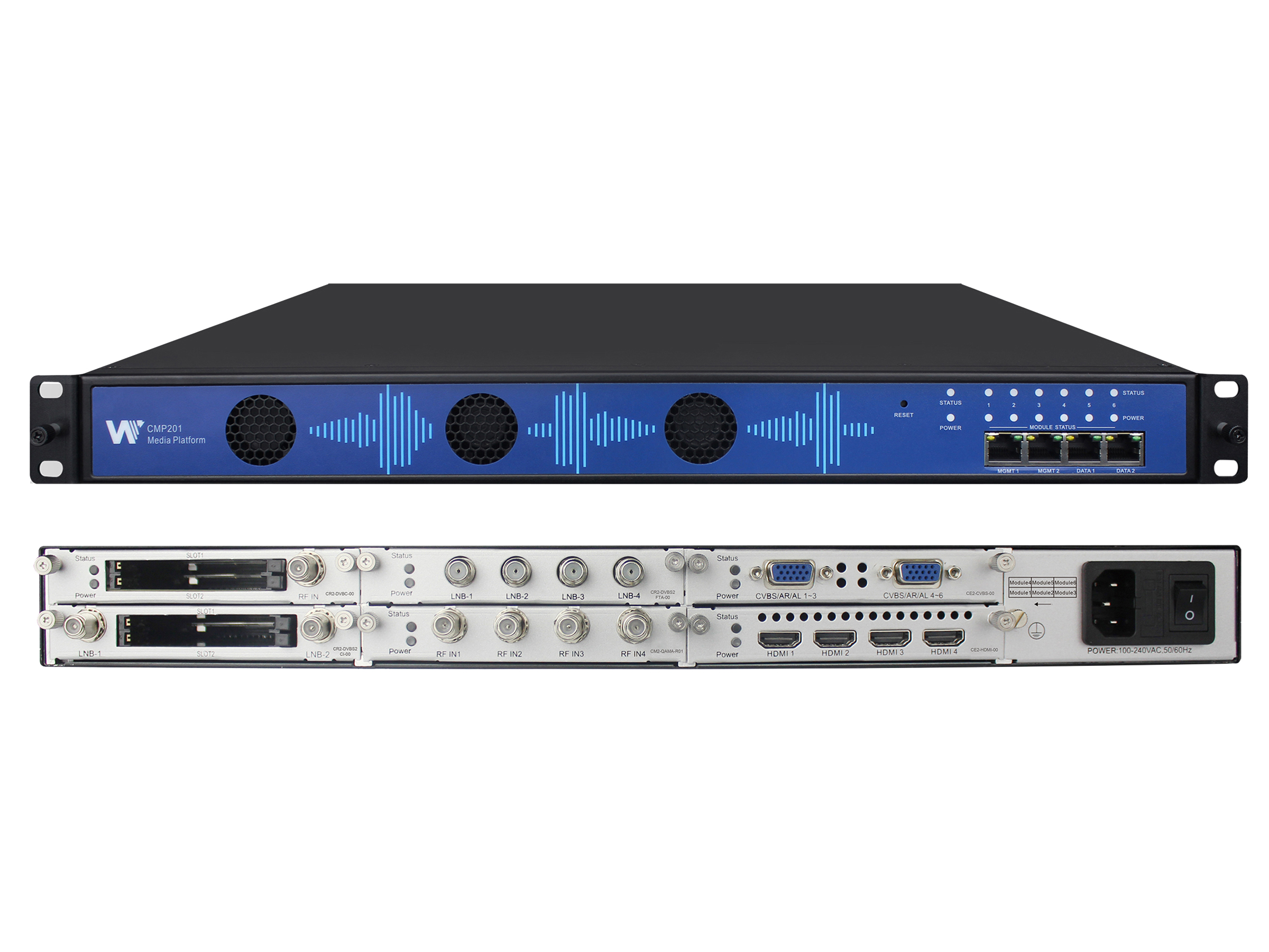 酒店、企业等场景常需处理卫星(DVB-S2)、有线(DVB-C)、地面(DTMB)等多标准信号,同时需兼顾高清(HDMI)与标清(CVBS)编码需求,传统设备兼容性有限,难以满足多格式信号统一处理需求。